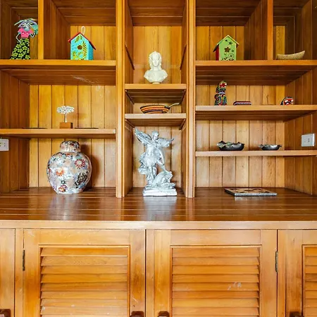 Overlooking the garden, the interior features a flat-screen TV with satellite channels for guests' entertainment.